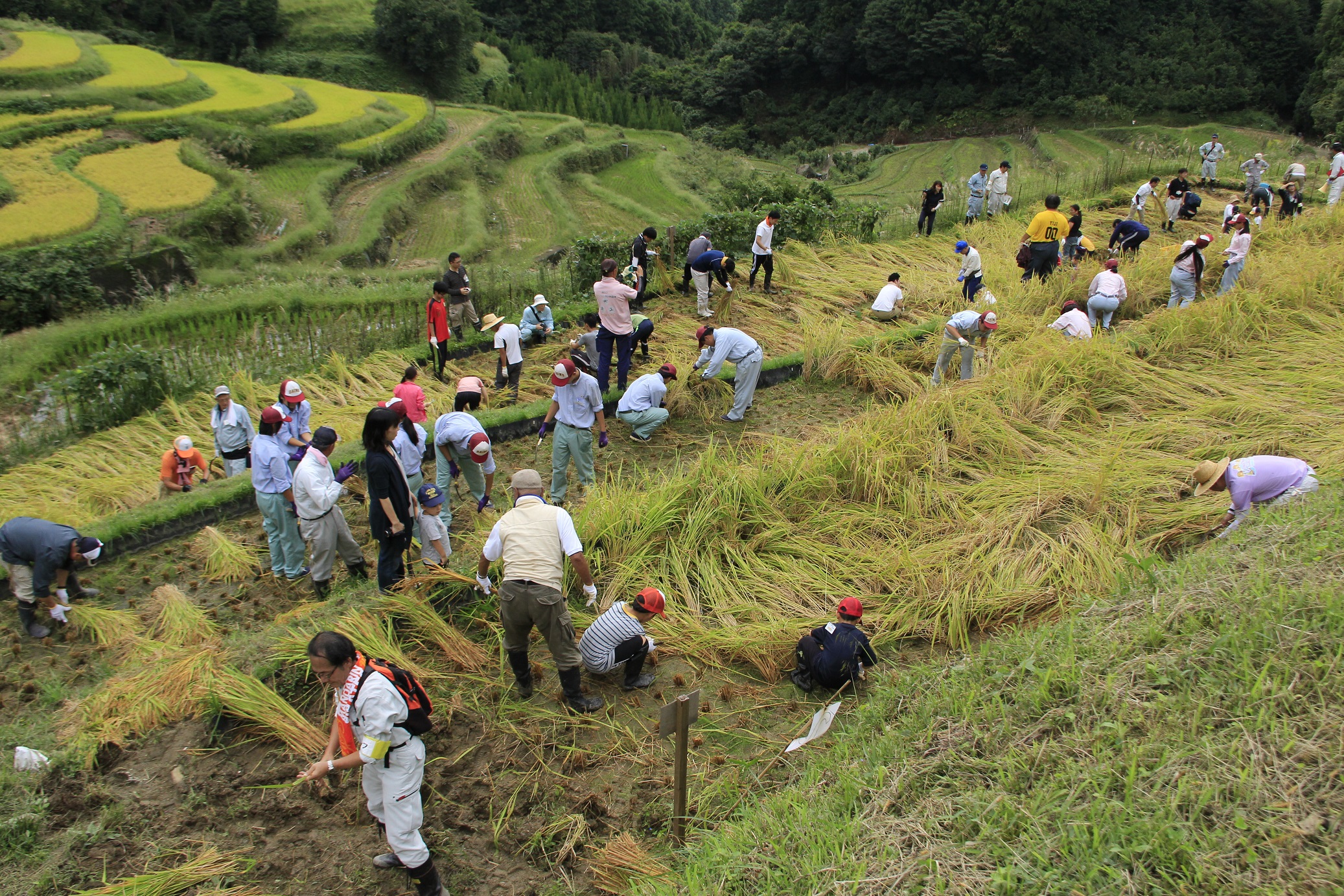 自然の恵みを受けた米づくり。人とのつながりを深める稲刈り体験。