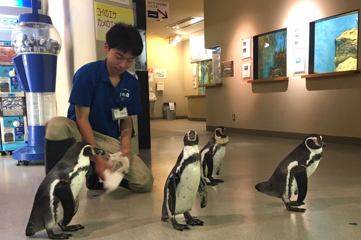 おさかな館は、日本三大清流の一つ・四万十川をはじめとする淡水に棲む魚たちを中心に、川の不思議や魅力を楽しく紹介している水族館です。源流から河口の生態系をテーマに展示をしているオープン形式の屋外ジオラマ水槽では、生物が活き活きとした表情を見せ心を癒してくれます。また、河口域に生息する“幻の魚”アカメや、世界最大級の淡水魚ピラルクが、その大きな体と優雅な泳ぎで魅了してくれます。その他にも、コツメカワウソや愛らしいペンギンたち、二足立ちするワニ”だいごろう”など、個性あふれる動物たちにも出会えます。ペンギンとの触れ合い体験や餌やり体験も可能です。