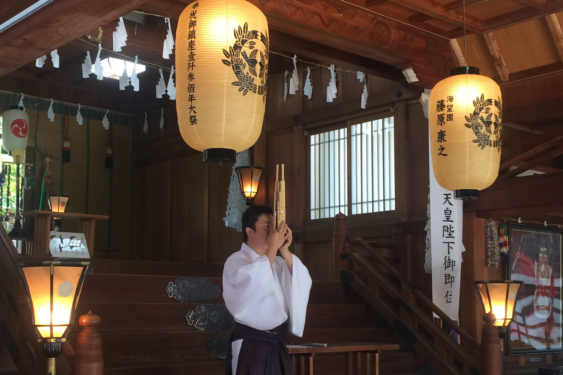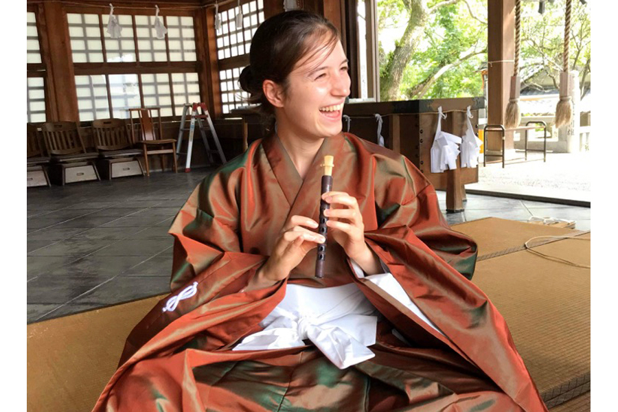 1300年の歴史ある神社で雅楽を学ぶ。